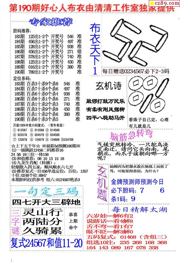 福彩3D2025337期 祁连牧哥百财纳福胆码图谜推荐