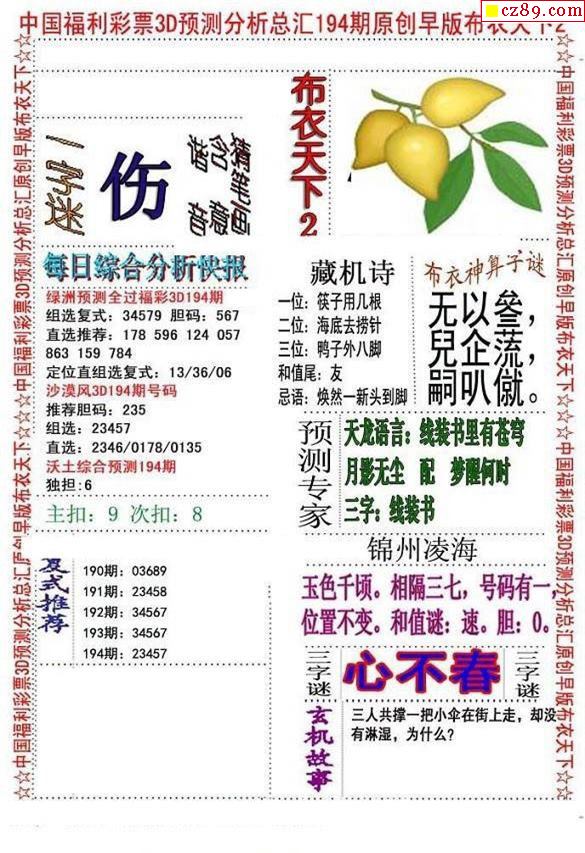 2021194期3d图谜汇总(五)