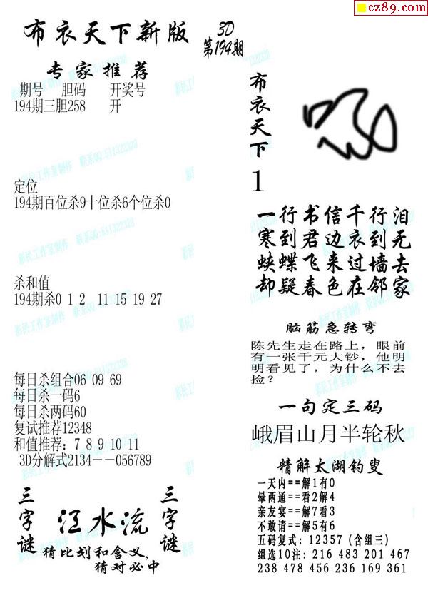 老夫子布衣2026032期3d图谜