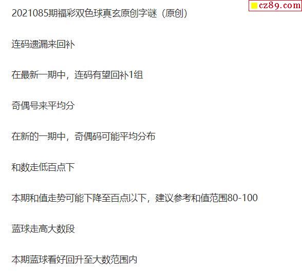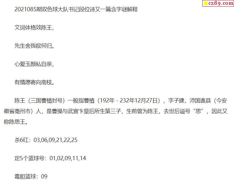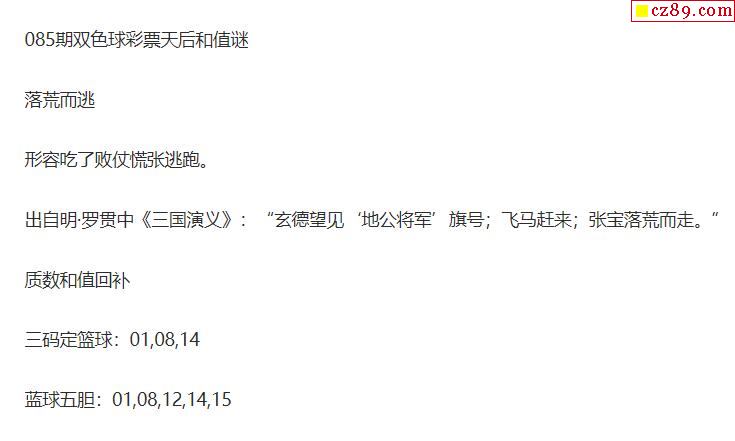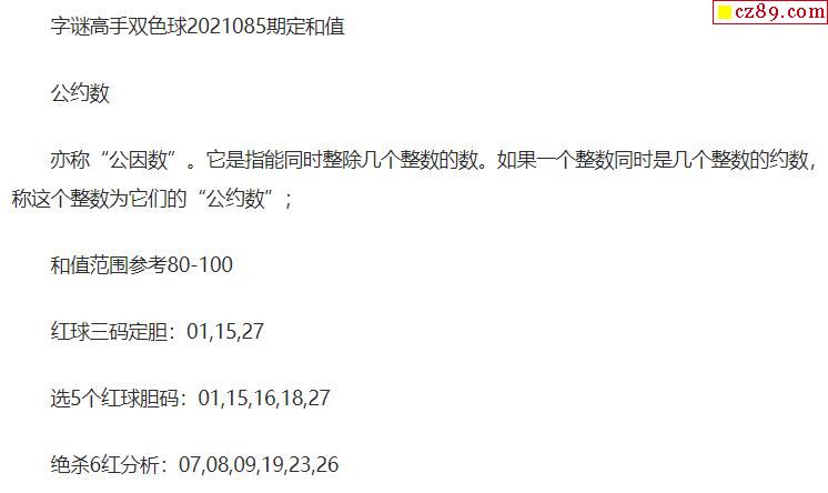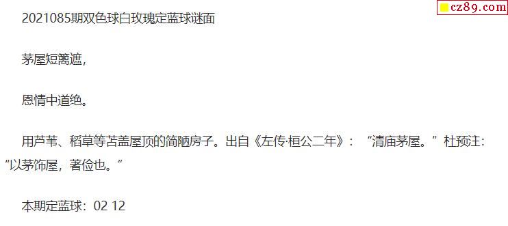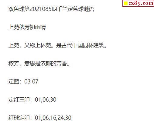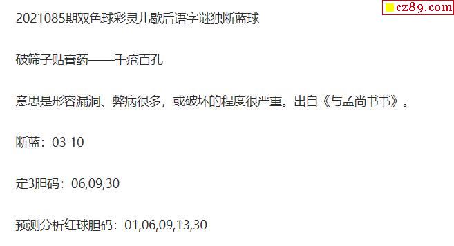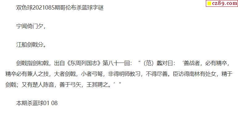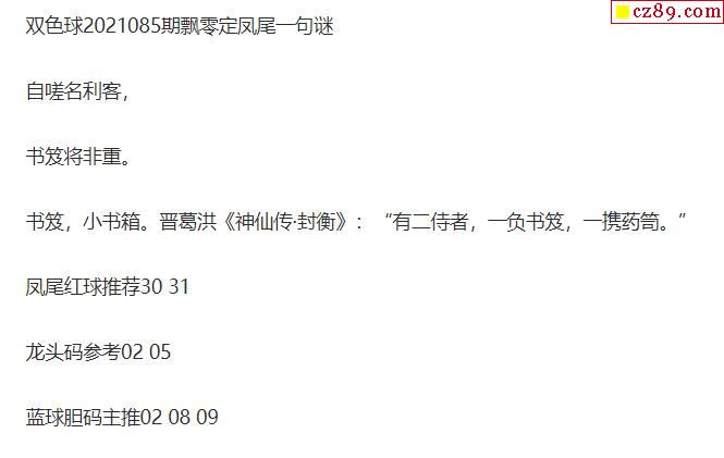 2021年085期牛彩网双色球字迷图谜汇总