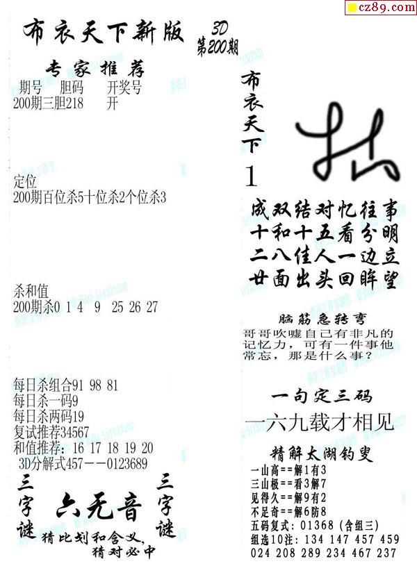 2021200期3d图谜汇总(五)