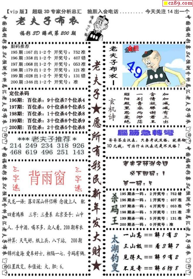 老夫子布衣2025346期3d图谜