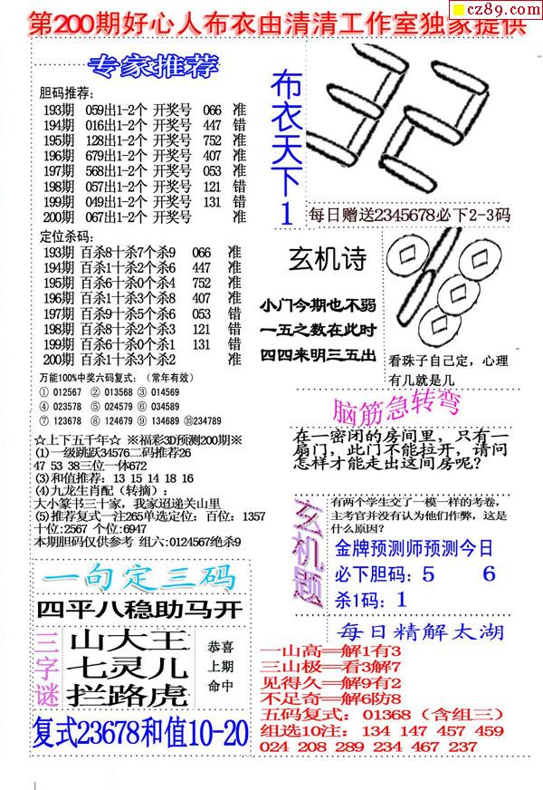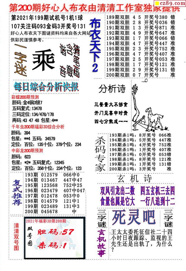 2021200期3D图谜汇总(八)