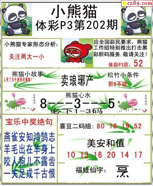 小熊猫2025337期体彩P3图谜