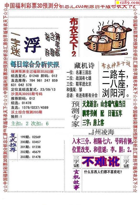 牛彩版3D字谜彩报图25年336期打印版