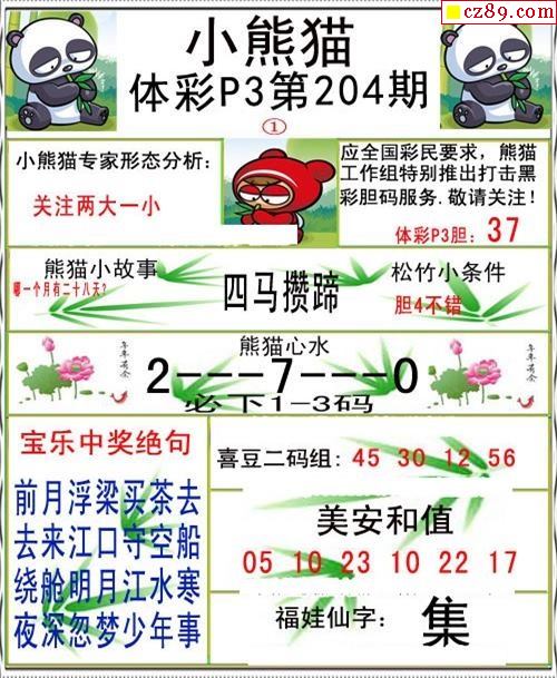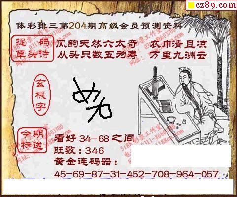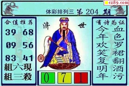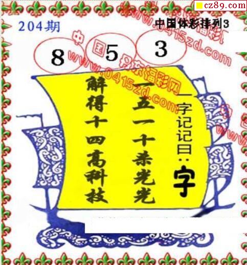 2021年204期牛彩网体彩P3画迷图谜汇总分享