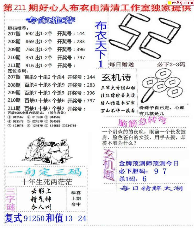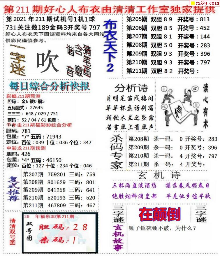 老夫子布衣2025346期3d图谜