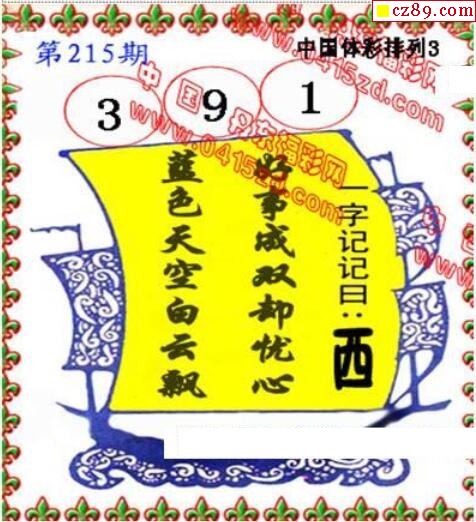 2021年215期牛彩网体彩P3画迷图谜汇总分享