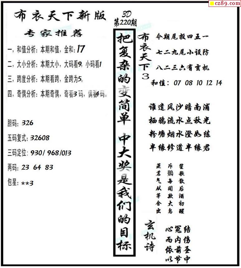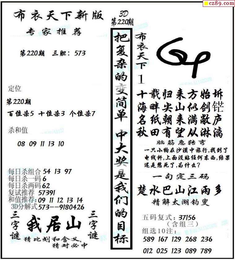 早版布衣2026030期3d图谜