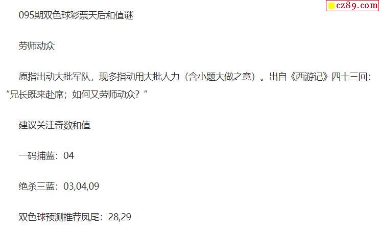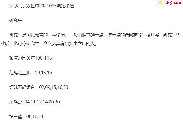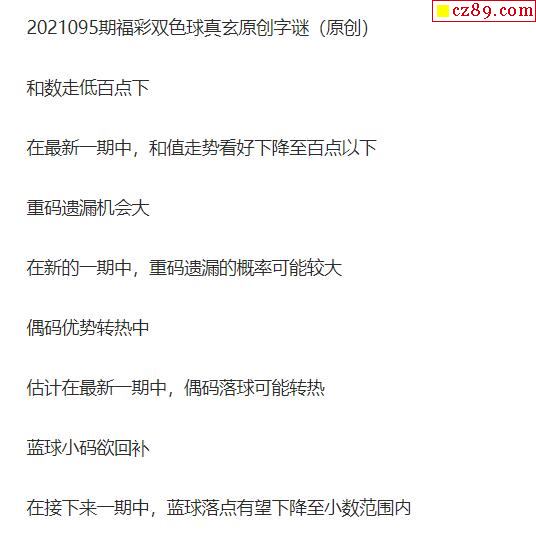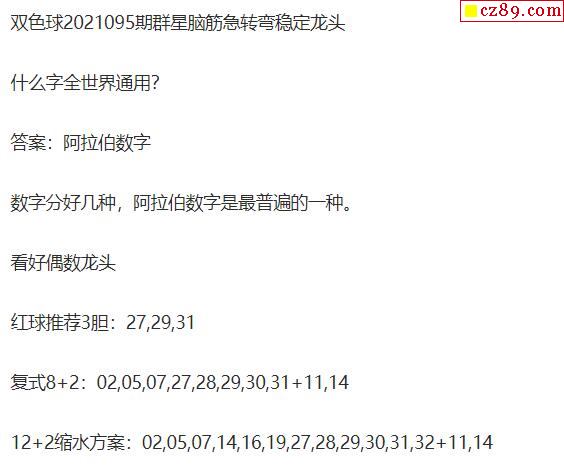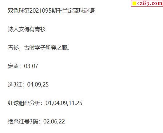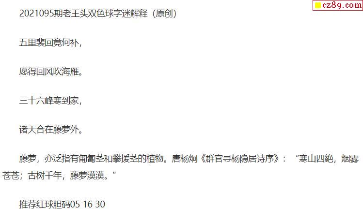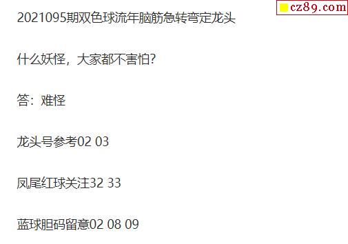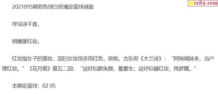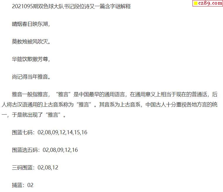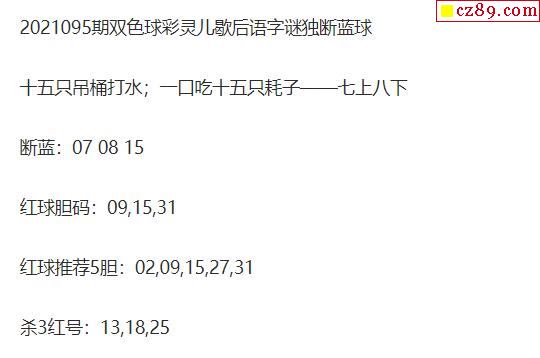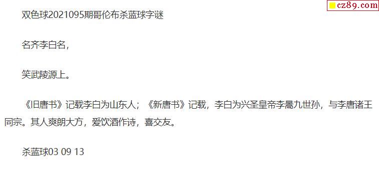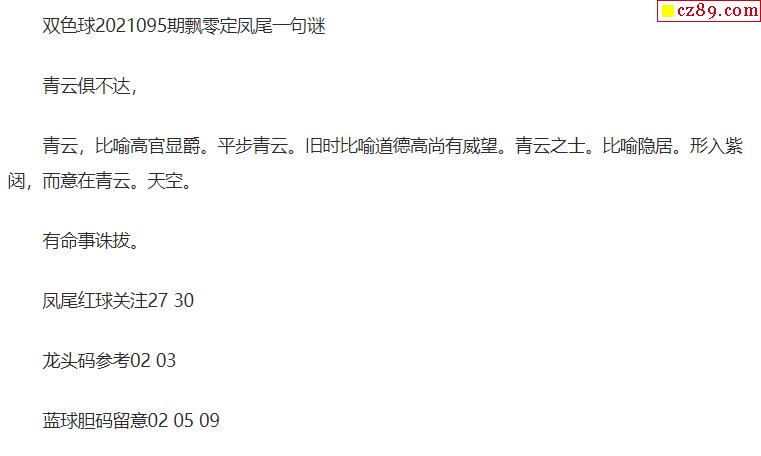 2021年095期牛彩网双色球字迷图谜汇总