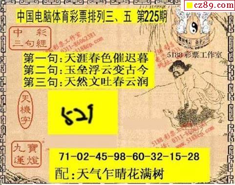 2021年225期牛彩网体彩P3画迷图谜汇总分享