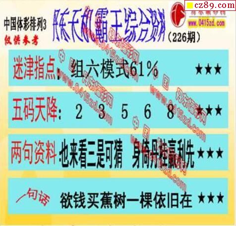 2021年226期牛彩网体彩P3画迷图谜汇总分享