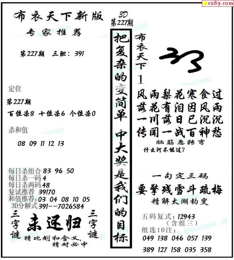 牛彩版3D字谜彩报图25年340期打印版