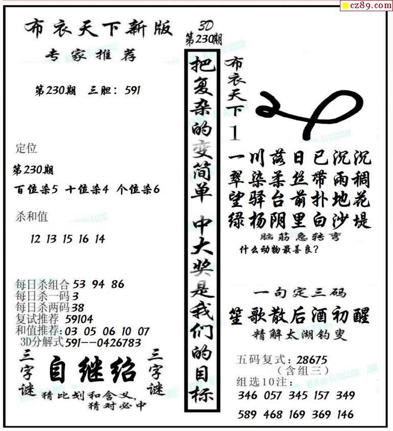 25福彩3d333期真版荆楚玄机彩报