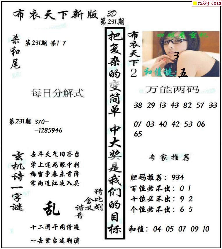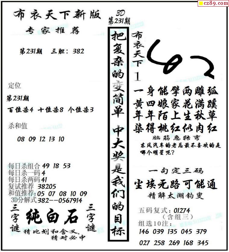 老夫子布衣2026018期3d图谜