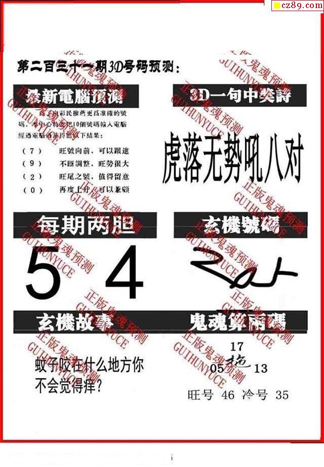牛彩版3D字谜彩报图25年332期打印版