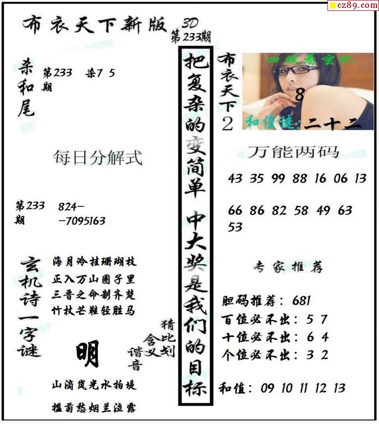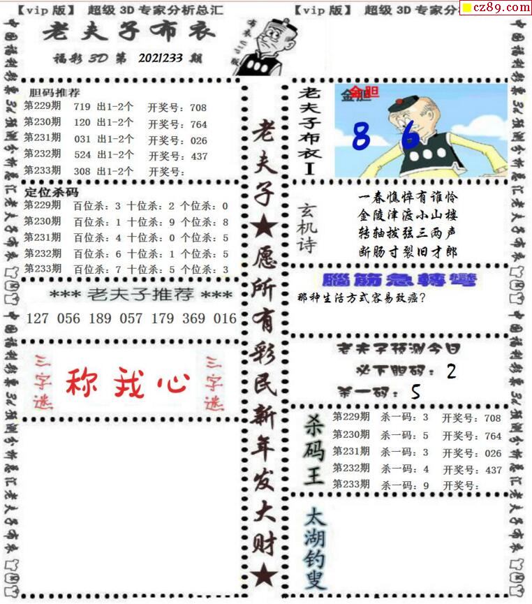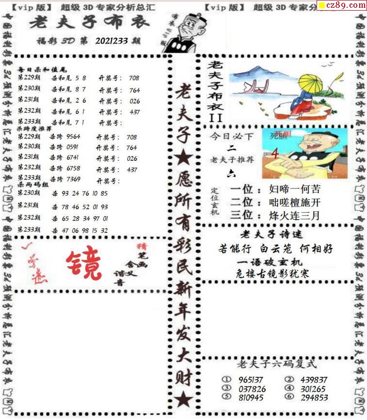 福彩3D2025341期 祁连牧哥百财纳福胆码图谜推荐