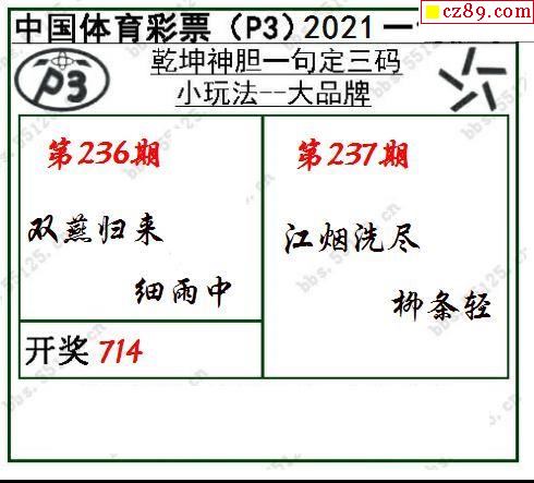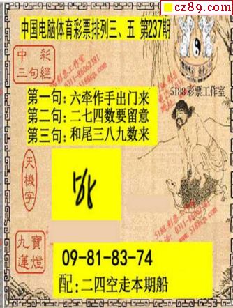 2021年237期牛彩网体彩P3画迷图谜汇总分享
