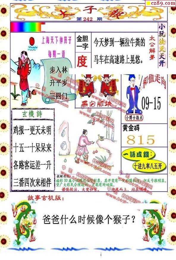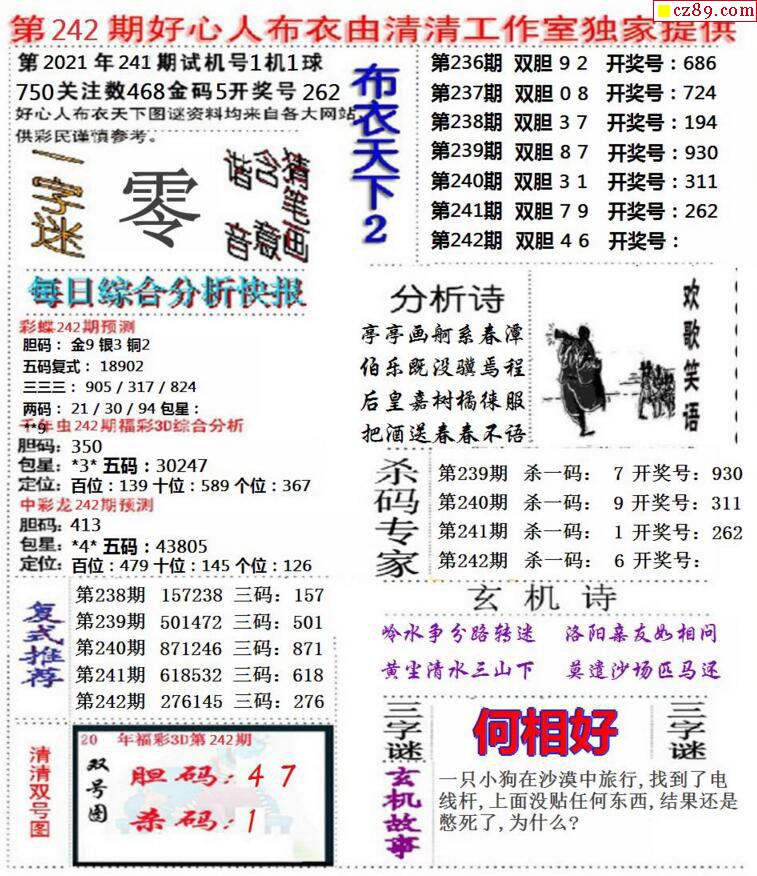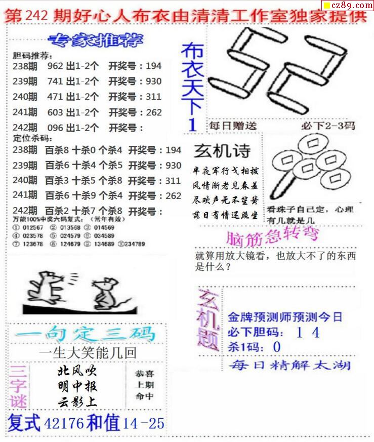 福彩3D2025332期 祁连牧哥百财纳福胆码图谜推荐