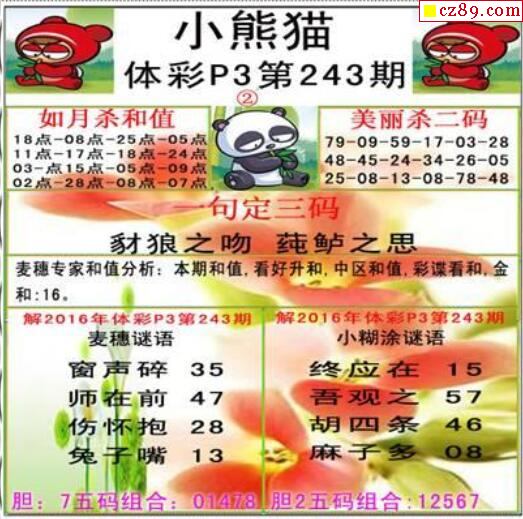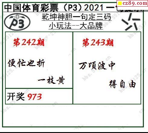2021年243期牛彩网体彩P3画迷图谜汇总分享