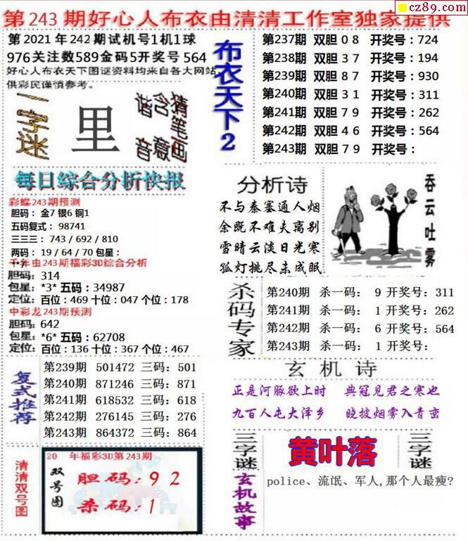 2021243期3D图谜汇总(八)