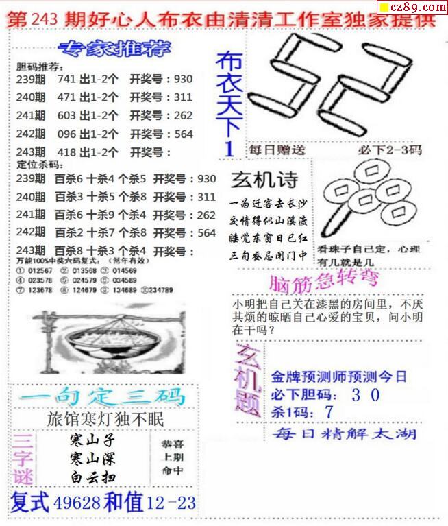 2026026期解太湖3d字图迷汇总报