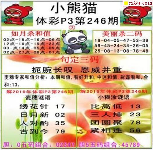 2021年246期牛彩网体彩P3画迷图谜汇总分享
