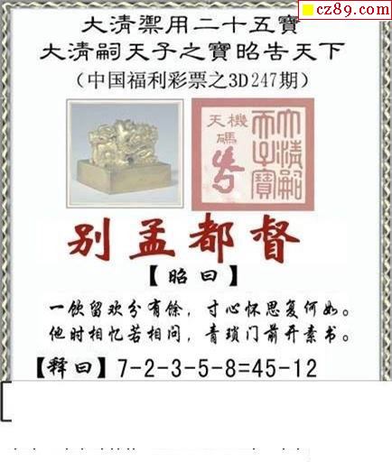 25年340期福彩3d真版关云长图谜