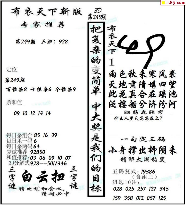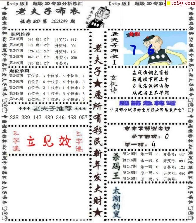 福彩3D2025333期 祁连牧哥百财纳福胆码图谜推荐