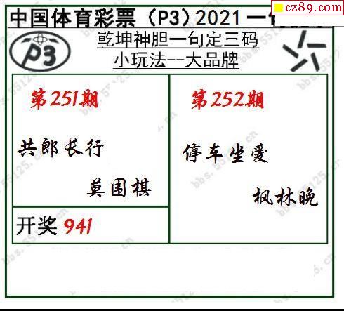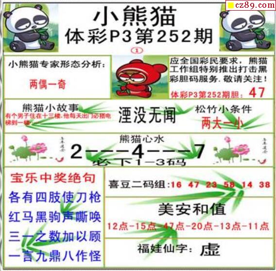 2021年252期牛彩网体彩P3画迷图谜汇总分享