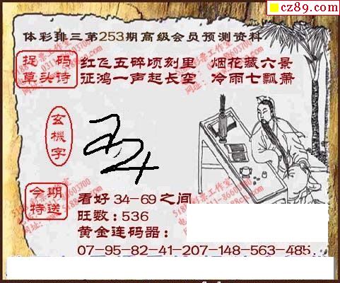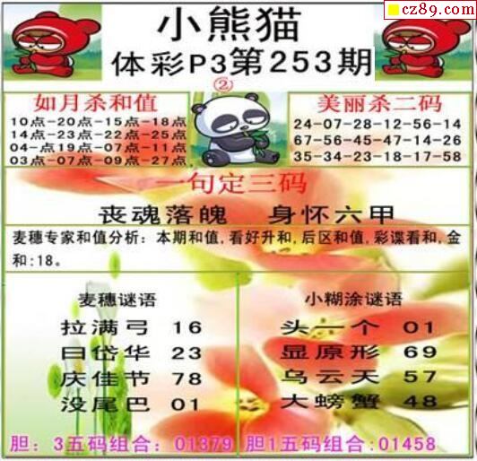 2021年253期牛彩网体彩P3画迷图谜汇总分享