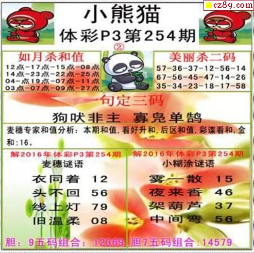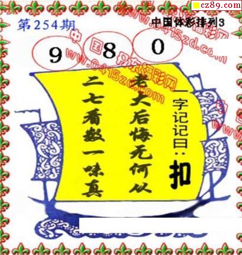 2021年254期牛彩网体彩P3画迷图谜汇总分享
