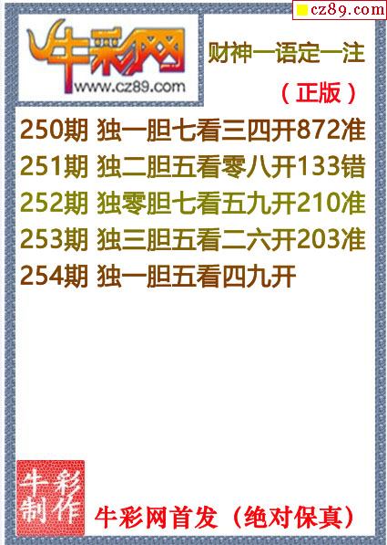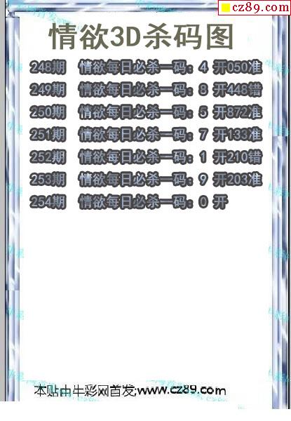 牛彩版3D预测彩报图25年334期打印版