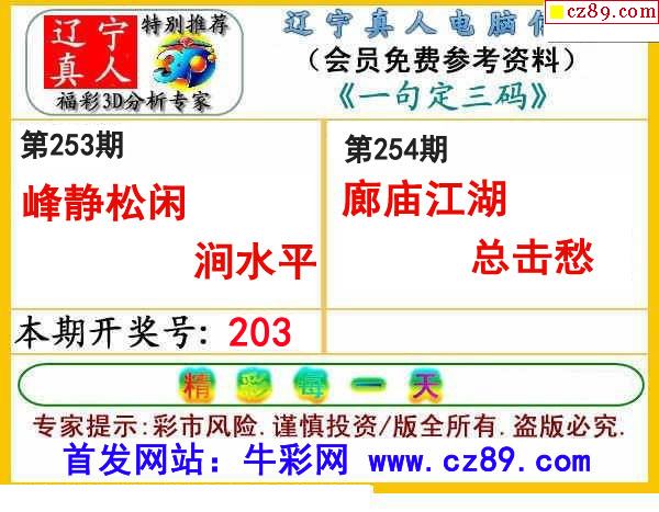 牛彩版3D字谜彩报图25年334期打印版