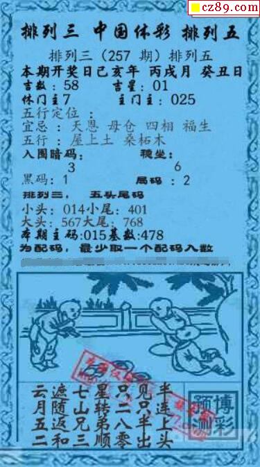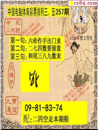 2021年257期牛彩网体彩P3画迷图谜汇总分享