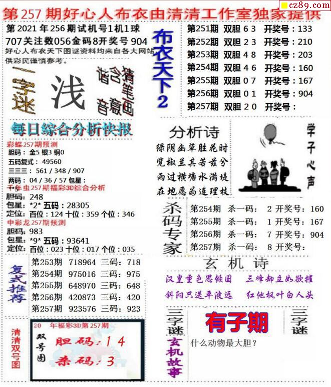 牛彩版3D字谜彩报图26年066期打印版