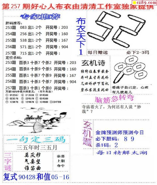 2026066期福彩3D图谜汇总