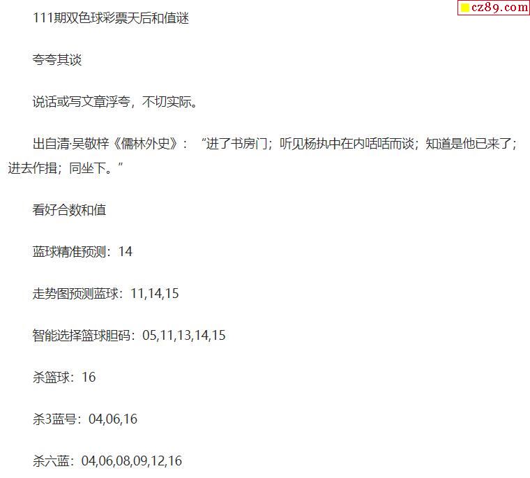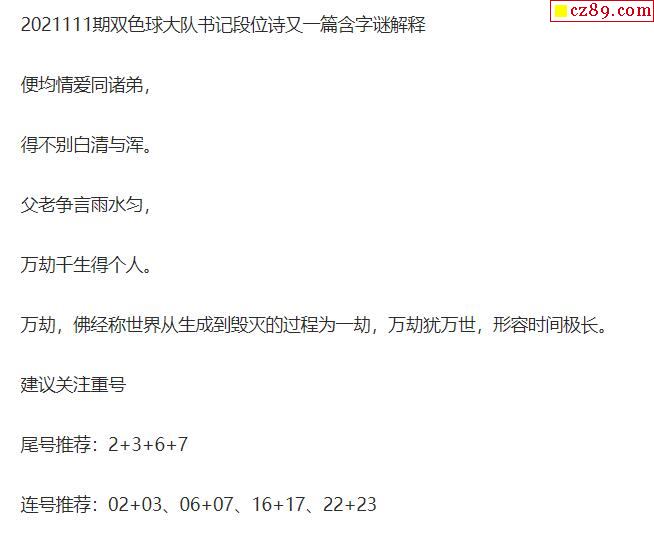 2021年111期牛彩网双色球字迷图谜汇总