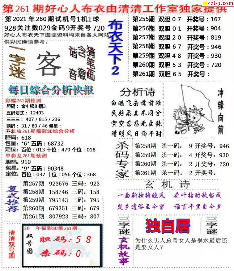 2021261期3D图谜汇总(八)