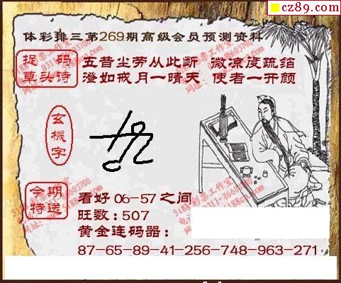 2021年269期牛彩网体彩P3画迷图谜汇总分享