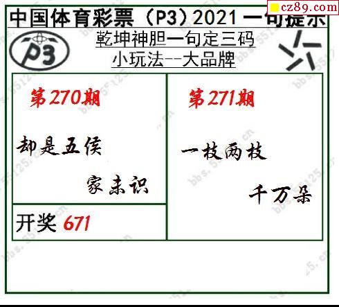 2021年271期牛彩网体彩P3画迷图谜汇总分享