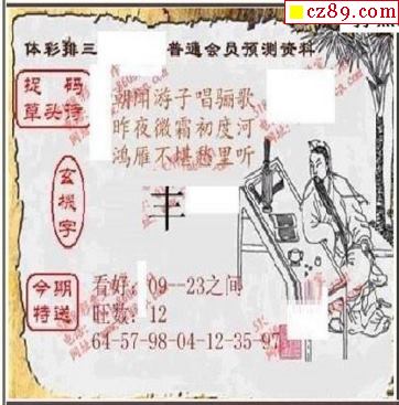 2025334期排列三 白鱼舟P3图谜二将斗胆图