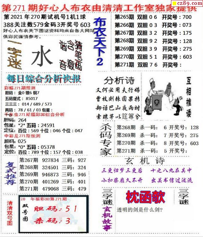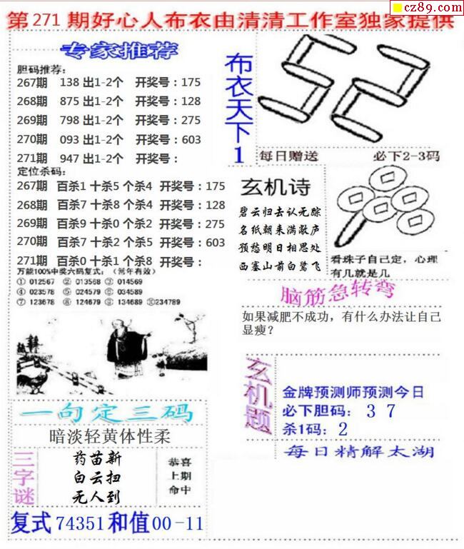 福彩3D2025332期 祁连牧哥百财纳福胆码图谜推荐