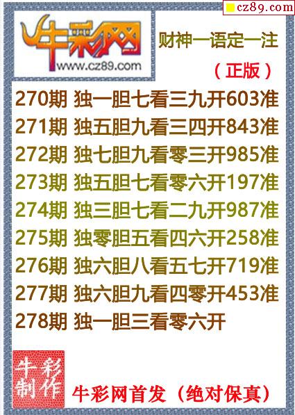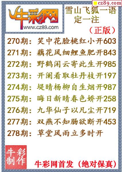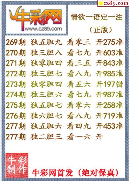 牛彩版3D字谜彩报图26年016期打印版