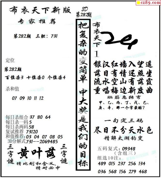 牛彩版3D字谜彩报图25年332期打印版