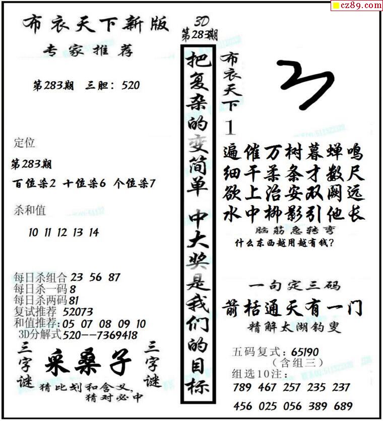 牛彩版3D字谜彩报图25年335期打印版