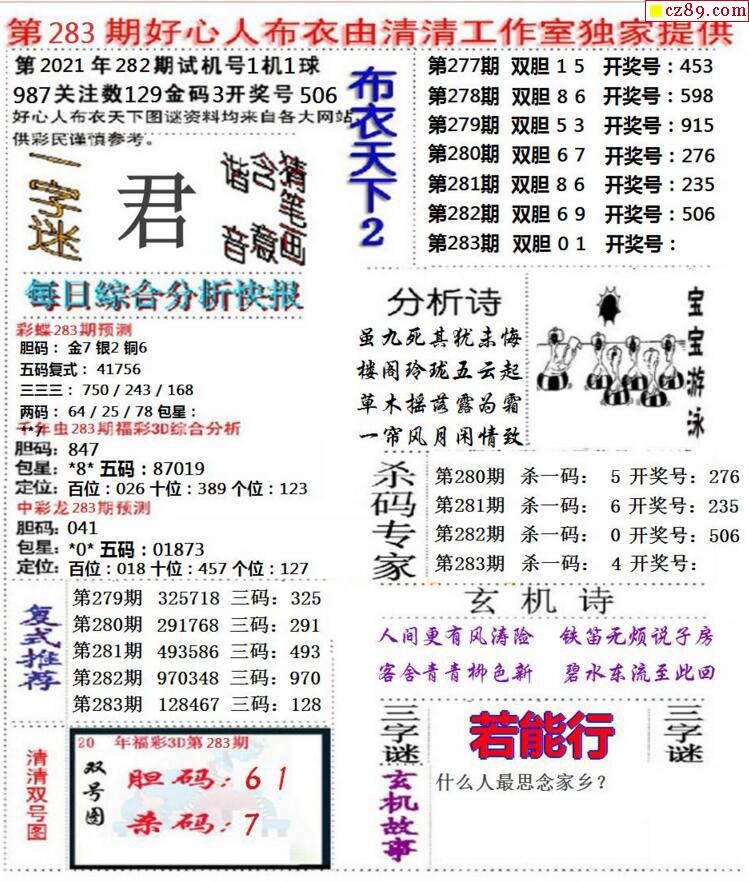2021283期3D图谜汇总(八)
