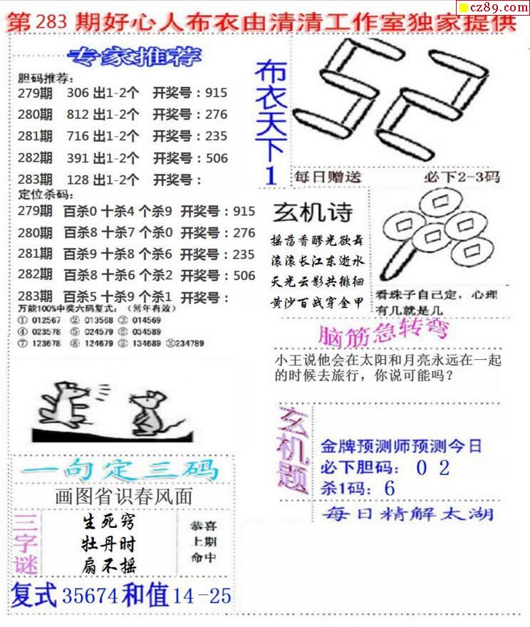 牛彩版3D字谜彩报图25年340期打印版