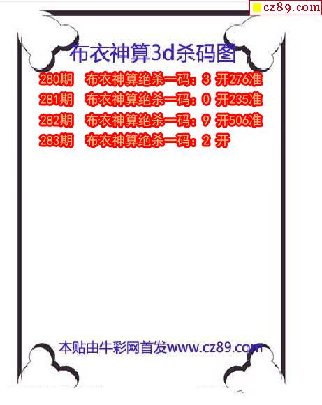 布衣怪字神贴2025344期3d图谜