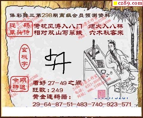 2021年298期牛彩网体彩P3画迷图谜汇总分享